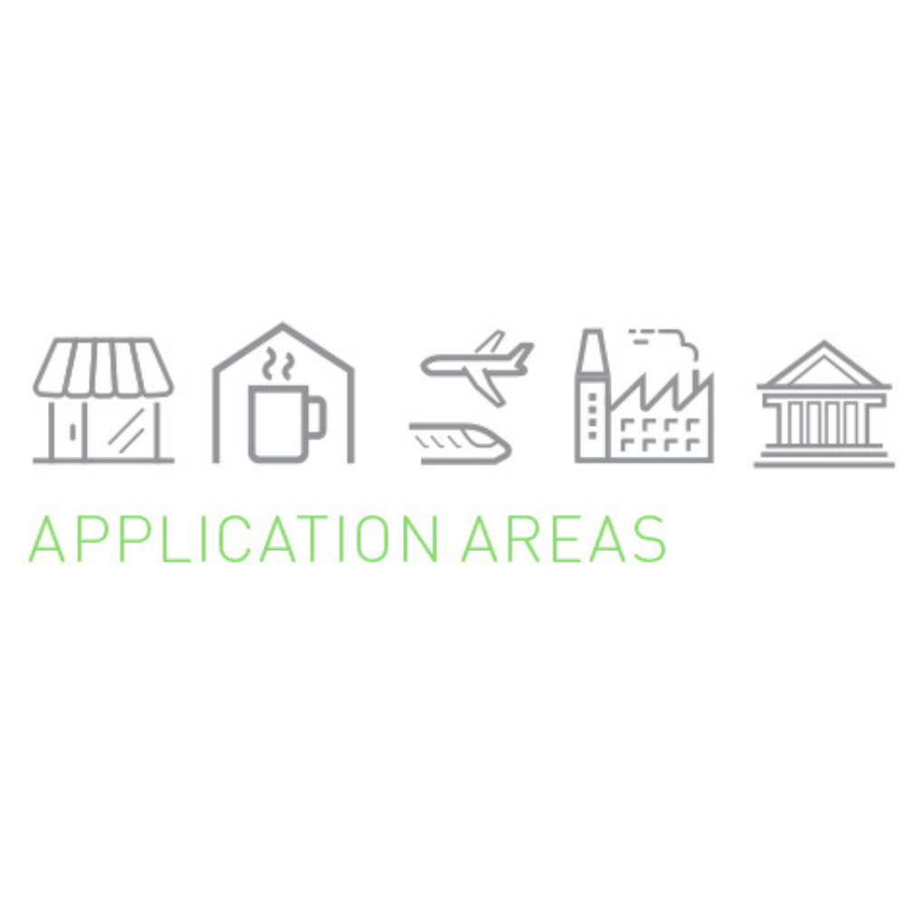 It can be used in areas such as, Public Government, Manufacturing Industry, HORECA, Businesses, Retail and Transport Hubs.