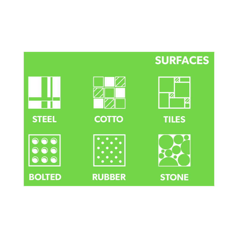 Ideal for surfaces of Cotto, Rubber, Stone, Steel, Tiles.