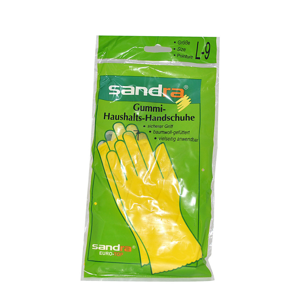 Ανθεκτικά γάντια οικιακής χρήσης SANDRA από λατέξ, που παρέχουν αποτελεσματική προστασία έναντι των κινδύνων για την υγεία σε οικιακές και επαγγελματικές εργασίες.