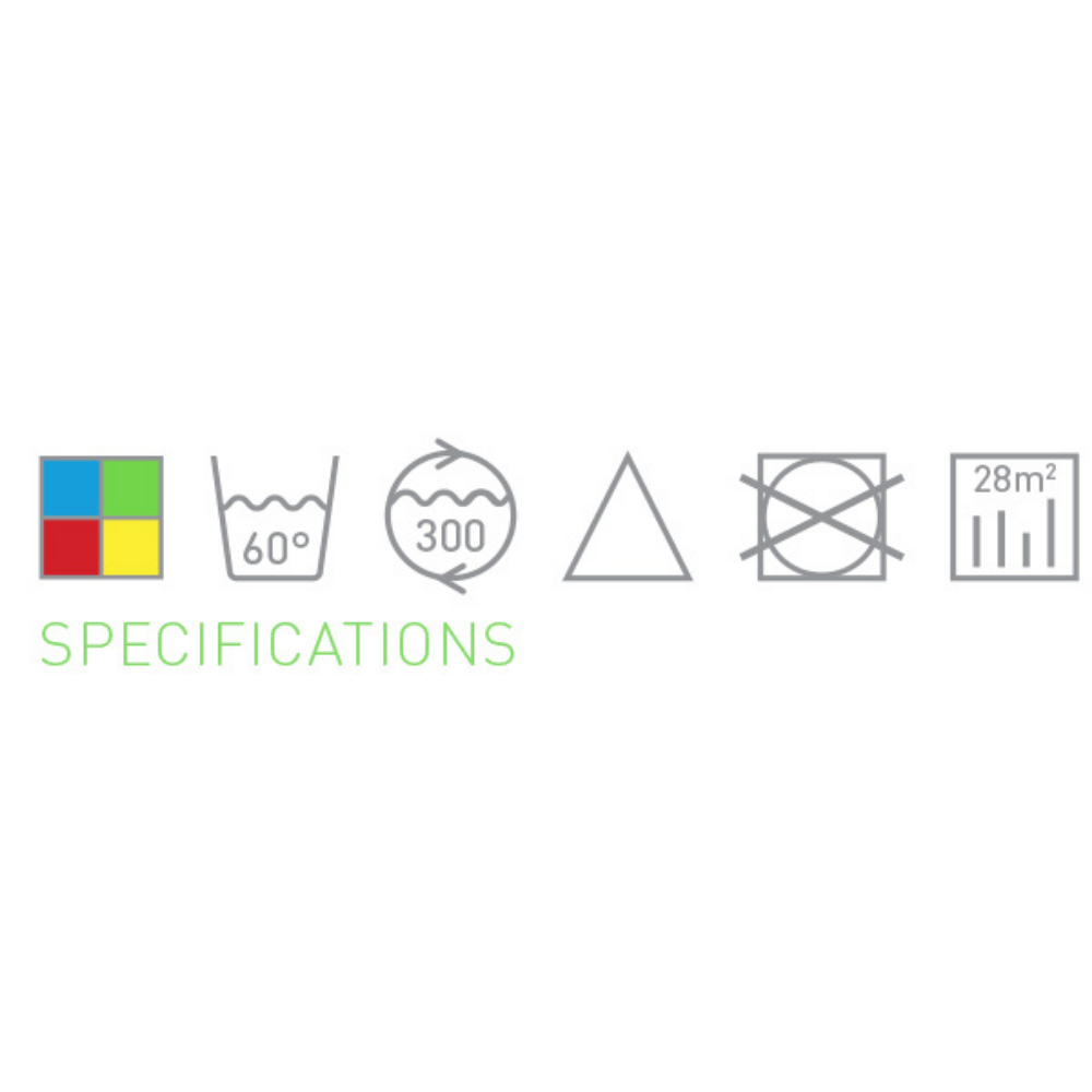 Πλένεται στους 60°C και έχει κύκλο ζωής τις 300 πλύσεις. Μπορεί να χρησιμοποιηθεί με χλωρίνη αλλά δεν μπαίνει στο στεγνωτήριο.