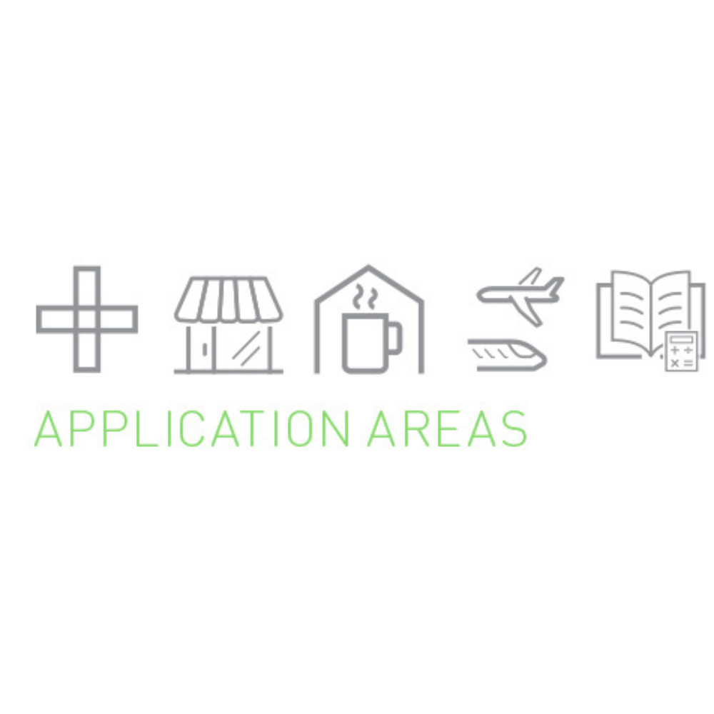 Κατάλληλη για χρήση σε χώρους υγείας, εμπορικά καταστήματα, εταιρείες, HORECA, αεροδρόμια, σιδ. σταθμούς και εκπαιδευτικά ιδρύματα.