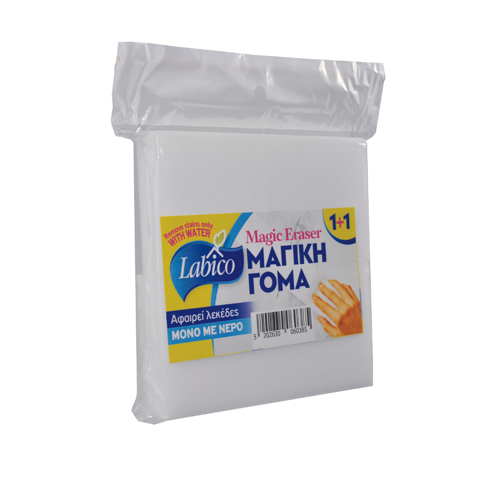 Το σφουγγάρι γόμα είναι ιδανικό για τον καθαρισμό όλων των λεκέδων ακόμα και των πιο επίμονων. Λειτουργεί σαν μια κλασσική γόμα! Χρησιμοποιήστε το με νερό για να καθαρισετε λεκέδες σε τοίχους, πλακάκια, ηλεκτρικές συσκευές, έπιπλα ακόμα και παπούτσια.